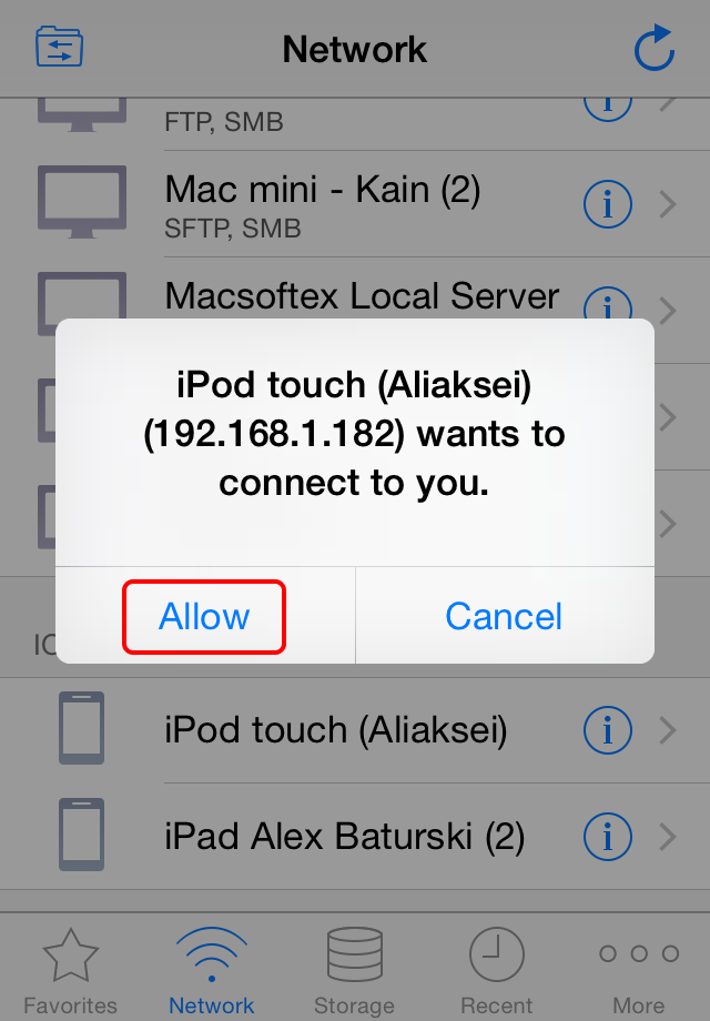 3. Allow the connection on the second iOS device